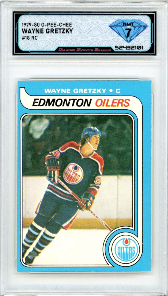 The rookie card of Wayne Gretzky, known to fans as The Great One ,stands as one of the most important cards in the history of hockey collecting. Issued during the early years of his legendary career, it captures the beginning of a player who would go on to completely redefine offensive dominance in the NHL. Printed on notoriously fragile stock and highly sensitive to centering and print quality, high-grade examples are extremely difficult to find. Because of these challenges, pristine copies have become some of the most coveted vintage hockey cards in the hobby. More than just a rookie card, it represents the origin of the most dominant career the sport has ever seen and remains a cornerstone piece for serious collectors..