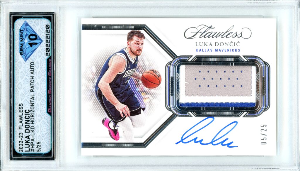 4. 2022-23 Flawless Luka Doncic Horizontal Patch Auto /25 DSG 10 Gem Mint $6500