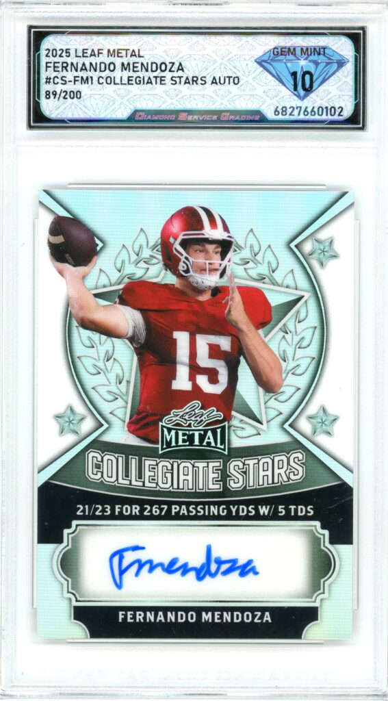 10. 2025 Leaf Metal Fernando Mendoza Collegiate Stars Auto /200 DSG 10 Gem Mint $800