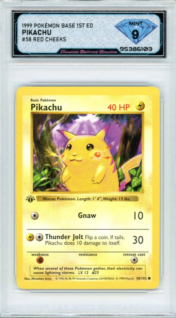 6. 1999 Pokemon Base Set 1st Edition Pikachu Red Cheeks DSG 9 Mint $2500